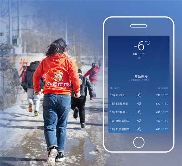 第二天一早,在青?!跋亩贾驹刚叻贞牎钡呐阃?,我們前往孩子們所在的互助土族自治縣。12月的青海已經進入冬季,清晨的溫度低至-6℃。一路上白雪茫茫,海拔從2200米升至3300米,隊員們的高原反應漸漸明顯,但是大家的心中卻是溫暖的。
